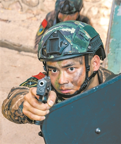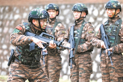 2月上旬,桂中腹地。一棟廢棄樓房內(nèi),武警特戰(zhàn)隊(duì)員正在進(jìn)行隱蔽突擊訓(xùn)練。“下面看我示范!”現(xiàn)場組織教學(xué)的是武警廣西總隊(duì)機(jī)動支隊(duì)參謀邱健。他的動作精準(zhǔn)迅捷,勢如猛虎,贏得官兵一片叫好聲。