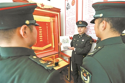 圖②:翻開相冊,分享照片背后的故事,已成為該班戰(zhàn)士爭取新榮譽的動力源泉。高翔 錢泓江 攝