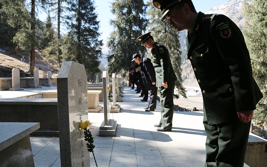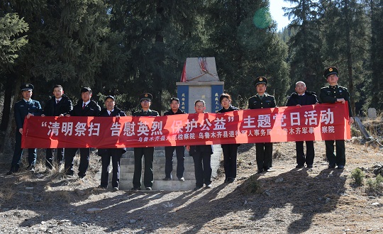 清明時(shí)節(jié),解放軍烏魯木齊軍事檢察院聯(lián)合新疆維吾爾自治區(qū)烏魯木齊縣人民檢察院檢察官,來到天山后峽216國道旁一處零散烈士墓,開展“清明祭掃、告慰英烈、保護(hù)公益”主題黨日活動(dòng)。