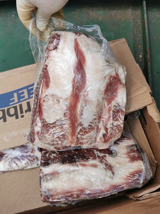 3月30日,涉案走私團(tuán)伙準(zhǔn)備在山東威海海域?qū)嵤┳咚椒缸锘顒?。得知線索后,山東海警局立即派遣威海海警局執(zhí)法艦艇前往目標(biāo)海域開展查緝。在執(zhí)法艦艇發(fā)現(xiàn)嫌疑船舶并靠近過程中,該走私船舶突然加速意欲逃離,海警執(zhí)法員果斷將其逼停,并組織船舶登檢。經(jīng)查,該船于3月23日自韓國裝載無合法來源和未經(jīng)檢驗(yàn)檢疫的日本進(jìn)口和牛肉后,關(guān)閉AIS設(shè)備進(jìn)入威海海域,被山東海警局當(dāng)場查獲。