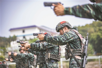 武警廣西總隊北海支隊組織特戰(zhàn)隊員進行精度射擊、槍種轉換射擊等課目訓練,錘煉官兵制勝本領。
