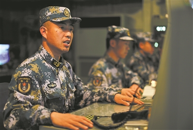 水下威脅剛解除,一場對空防御戰(zhàn)斗又緊急打響。編隊指揮室內(nèi),“敵情”態(tài)勢實時更新,一道道指令快速傳至各戰(zhàn)位。在煙幕掩護(hù)下,編隊各艦快速機(jī)動規(guī)避,組成對空防御隊形,利用副炮抗擊來襲導(dǎo)彈。