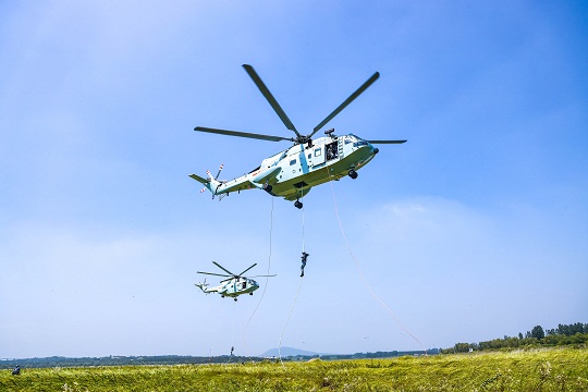 圖為直升機(jī)滑降。