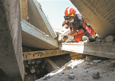 抵達(dá)現(xiàn)場(chǎng),生死時(shí)速的救援行動(dòng)隨即展開。搜索組沖鋒在前,隊(duì)員攜帶搜救犬在廢墟間探尋生命跡象;破拆組利用電動(dòng)沖擊鉆、液壓切割機(jī)等工具,破拆垮塌的樓板;頂撐組借助承重氣墊和木塊對(duì)危險(xiǎn)部位進(jìn)行加固,防止發(fā)生二次坍塌;轉(zhuǎn)運(yùn)組快速將救出的“幸存者”轉(zhuǎn)送至安全地帶……