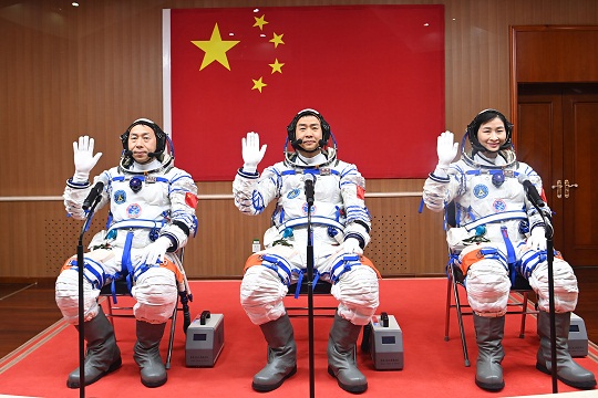 本報訊 記者廉穎婷 據(jù)中國載人航天工程辦公室消息,6月5日7時54分,神舟十四號載人飛行任務航天員乘組出征儀式在酒泉衛(wèi)星發(fā)射中心問天閣廣場舉行。7時56分,中國載人航天工程總指揮、空間站階段飛行任務總指揮部總指揮長李尚福下達命令,陳冬、劉洋、蔡旭哲3名航天員領命出征,即將開啟為期6個月的飛行任務。
