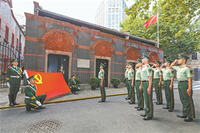 夏日申城,滿目綠色。站在武警上海市總隊執(zhí)勤第四支隊十中隊營房頂層望去,一座紅色基調(diào)浸染的石庫門建筑,在現(xiàn)代都市建筑群中格外醒目。那里,正是黨的一大會址。