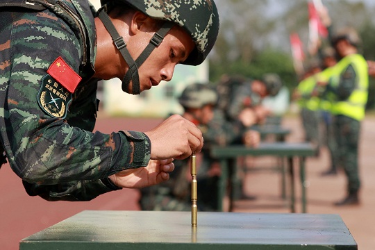 圖為參賽隊(duì)員疊放彈殼鍛煉心理抗壓能力。雷轍 攝