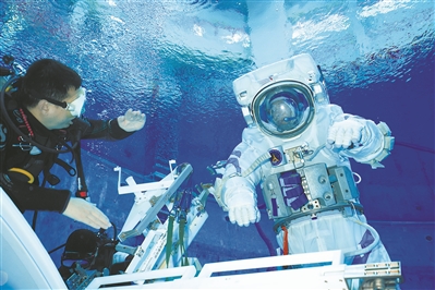 這是該中心模擬出艙訓(xùn)練的主要場(chǎng)地。航天員教員趙陽與航天員一起開展水下訓(xùn)練,已很長(zhǎng)時(shí)間。一旦忙起來,趙陽一天只睡4個(gè)小時(shí)、吃一頓飯。教員的任務(wù)是分解每個(gè)動(dòng)作,細(xì)化每個(gè)姿態(tài),幫助航天員迅速、安全地找到返回的路。