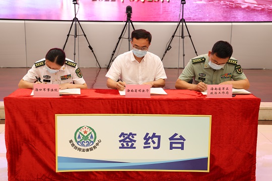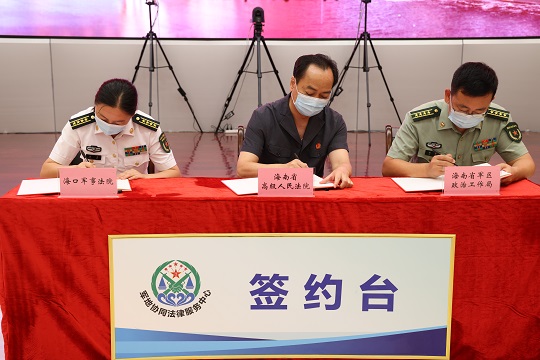 本報???月28日電 記者陳麗平 通訊員張凱 今天,海南省高級人民法院、省司法廳、省軍區(qū)政治工作局,以及解放軍海口軍事法院舉行海南軍地協(xié)同法律服務中心揭牌及簽約儀式。