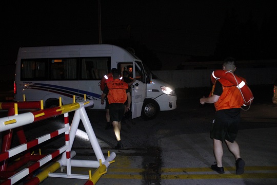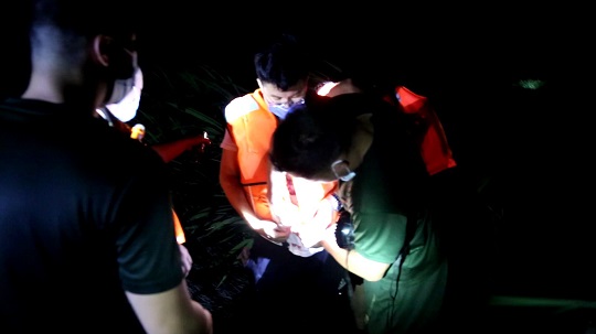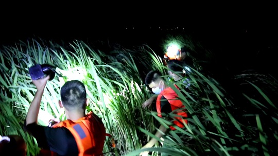 根據(jù)受困人員提供的信息,執(zhí)法員初步判斷兩人位于蘆葦蕩深處,但現(xiàn)場密集的蘆葦叢導致執(zhí)法員視野受阻,無法確定具體位置。考慮到海水仍在暴漲,群眾隨時可能遇險的緊急情況,經(jīng)過短暫的現(xiàn)場研判,指揮員親自率隊克服風聲嘈雜、路況惡劣等諸多不利因素深入搜尋,搜救小分隊一邊打著遠光燈試圖給受困人員指明方向的同時,一邊在黑夜中喊話進行搜索。經(jīng)過20分鐘的不懈努力和細心觀察,最終在3公里外發(fā)現(xiàn)被困海中的游客,并于20時20分左右成功將2人安全救回。