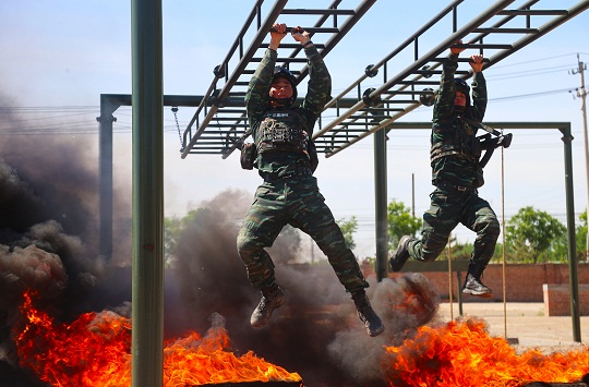 圖為特戰(zhàn)隊(duì)員進(jìn)行突破障礙訓(xùn)練。