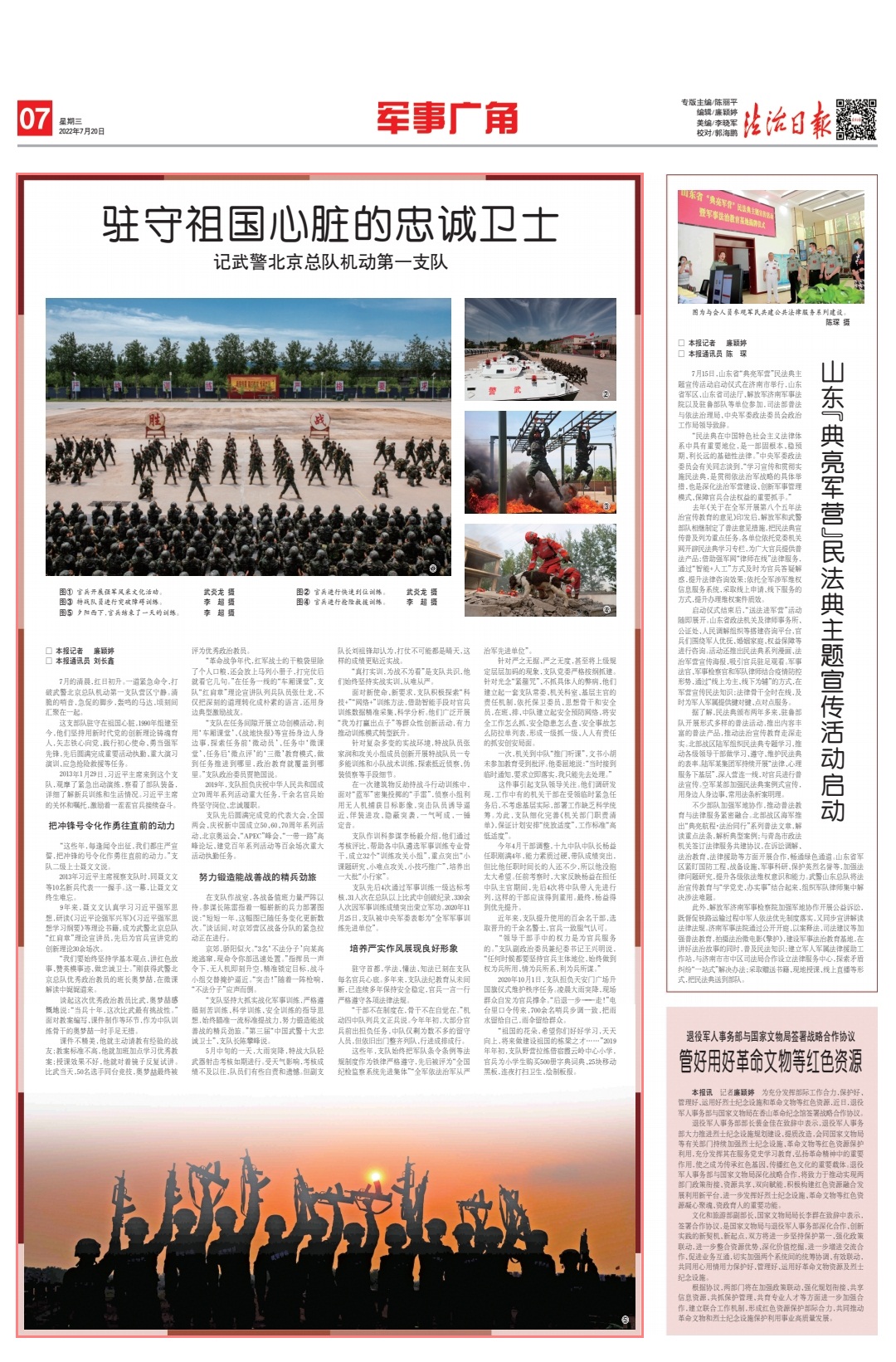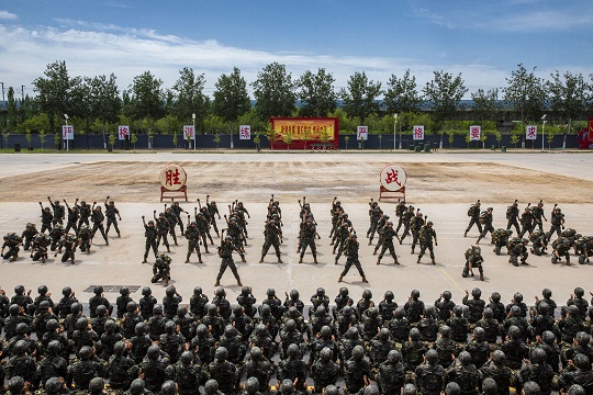 京郊,驕陽似火?!?名‘不法分子’向某高地逃竄,現(xiàn)命令你部迅速處置?!敝笓]員一聲令下,無人機(jī)即刻升空,精準(zhǔn)鎖定目標(biāo),戰(zhàn)斗小組交替掩護(hù)逼近?!巴粨?!”隨著一陣槍響,“不法分子”應(yīng)聲而倒。