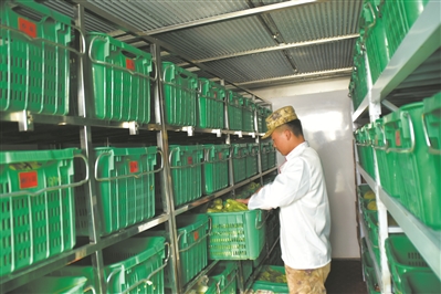 為此,軍委機(jī)關(guān)有關(guān)部門及時(shí)組織調(diào)研論證,探索高原駐訓(xùn)部隊(duì)動(dòng)散條件下果蔬保鮮存儲(chǔ)新辦法。他們結(jié)合部隊(duì)野外駐訓(xùn)輪訓(xùn)等時(shí)機(jī),在部分基層伙食單位進(jìn)行試點(diǎn),試用集裝箱型野戰(zhàn)菜窖。據(jù)介紹,該型菜窖具有節(jié)能環(huán)保、調(diào)控恒溫、移動(dòng)便捷、易于維護(hù)等特點(diǎn),自帶智能保溫系統(tǒng),還具有防生物霉變功能,能有效減緩蔬菜變質(zhì)速度。
