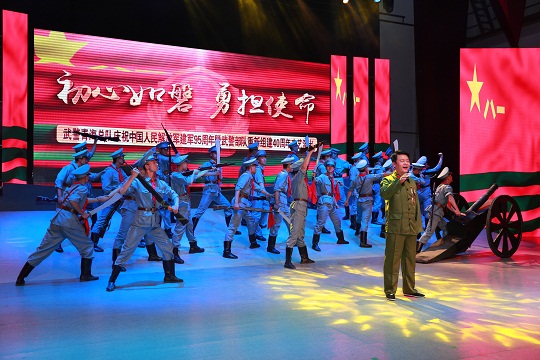 戰(zhàn)歌頌輝煌,奮進(jìn)強(qiáng)軍路。7月26日下午,武警青??傟犅≈嘏e辦“初心如磐,勇?lián)姑敝黝}文藝演出活動,熱烈慶祝中國人民解放軍建軍95周年和武警部隊重新組建40周年,基層官兵通過網(wǎng)絡(luò)視頻同步收看。整場演出深情謳歌了人民軍隊95年一路披荊斬棘、浴血奮戰(zhàn)的光輝歷程,生動再現(xiàn)了武警部隊40年始終鐵心向黨、服務(wù)人民的激昂風(fēng)采。
