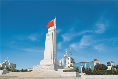 圖①:2022年八一建軍節(jié)前夕,南昌市八一廣場上,八一南昌起義紀(jì)念塔頂端鮮紅的軍旗在陽光下熠熠生輝。盧成行攝