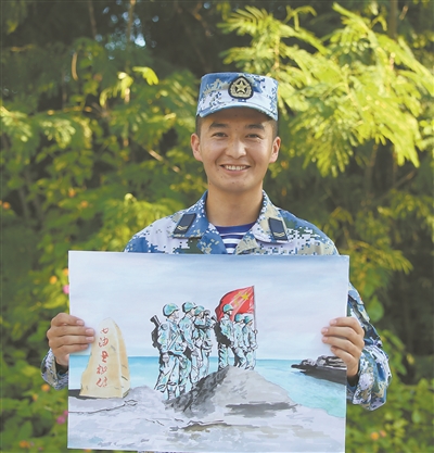 生長(zhǎng)在新疆的我,從小就向往大海,夢(mèng)想著成為一名海軍戰(zhàn)士。幸運(yùn)的是,2年前,這個(gè)夢(mèng)想成真了。然而上島后,理想與現(xiàn)實(shí)的差距曾讓我一度感到迷茫。直到有一次與在島上待了10余年的軍醫(yī)聊天,我才改變了對(duì)守島的認(rèn)識(shí),開(kāi)始懂得了堅(jiān)守的意義。也是從那時(shí)開(kāi)始,我發(fā)揮特長(zhǎng),用畫筆記錄西沙的壯麗風(fēng)光、守島官兵的訓(xùn)練生活。