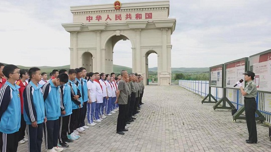 在阿爾山國門前,老兵王云剛正在給學(xué)生們講述他當兵時的戰(zhàn)斗故事,“1969年4月,在武器運輸途中,我們遭到敵軍轟炸機轟炸,立即做出反擊……”講起那段保衛(wèi)祖國的光榮經(jīng)歷,他依舊很激動。