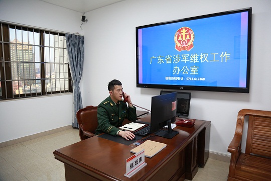 圖為廣東省涉軍維權(quán)工作辦公室開(kāi)通熱線電話,維權(quán)服務(wù)人員接聽(tīng)駐粵部隊(duì)官兵電話咨詢。程勇 劉文敬 攝