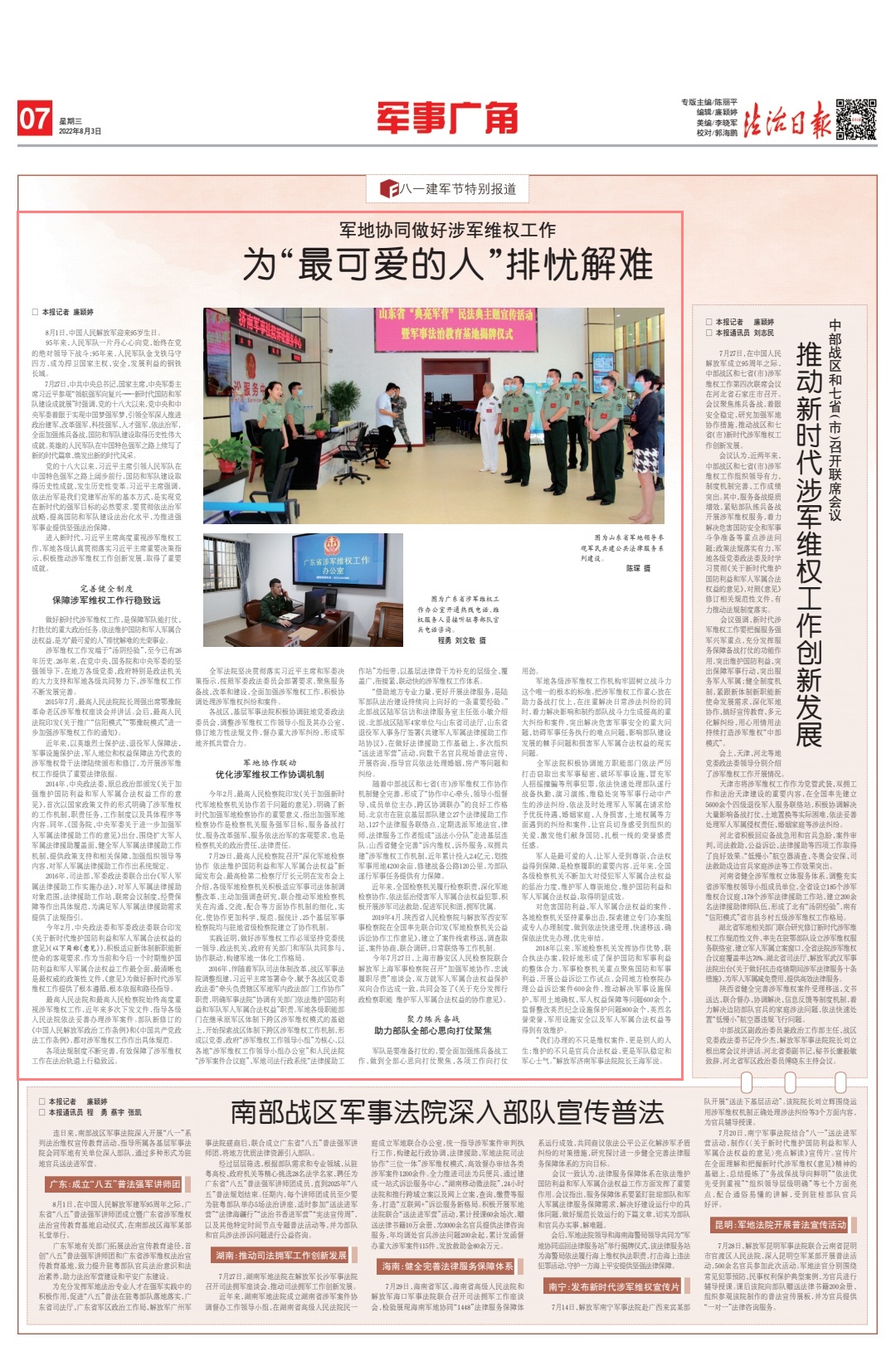 隨著中部戰(zhàn)區(qū)和七?。ㄊ校┥孳娋S權(quán)工作協(xié)作機(jī)制健全完善,形成了“協(xié)作中心牽頭、領(lǐng)導(dǎo)小組督導(dǎo)、成員單位主辦、跨區(qū)協(xié)調(diào)聯(lián)辦”的良好工作格局。北京市在駐京基層部隊(duì)建立27個(gè)法律援助工作站、127個(gè)法律服務(wù)聯(lián)絡(luò)點(diǎn),定期選派軍地法官、律師、法律服務(wù)工作者組成“送法小分隊(duì)”走進(jìn)基層連隊(duì)。山西省健全完善“訴內(nèi)維權(quán)、訴外服務(wù)、雙擁共建”涉軍維權(quán)工作機(jī)制,近年累計(jì)投入2.4億元,劃撥軍事用地4200余畝,修建戰(zhàn)備公路120公里,為部隊(duì)遂行軍事任務(wù)提供有力保障。