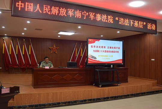 圖為南寧軍事法院開(kāi)展送法進(jìn)軍營(yíng)授課。