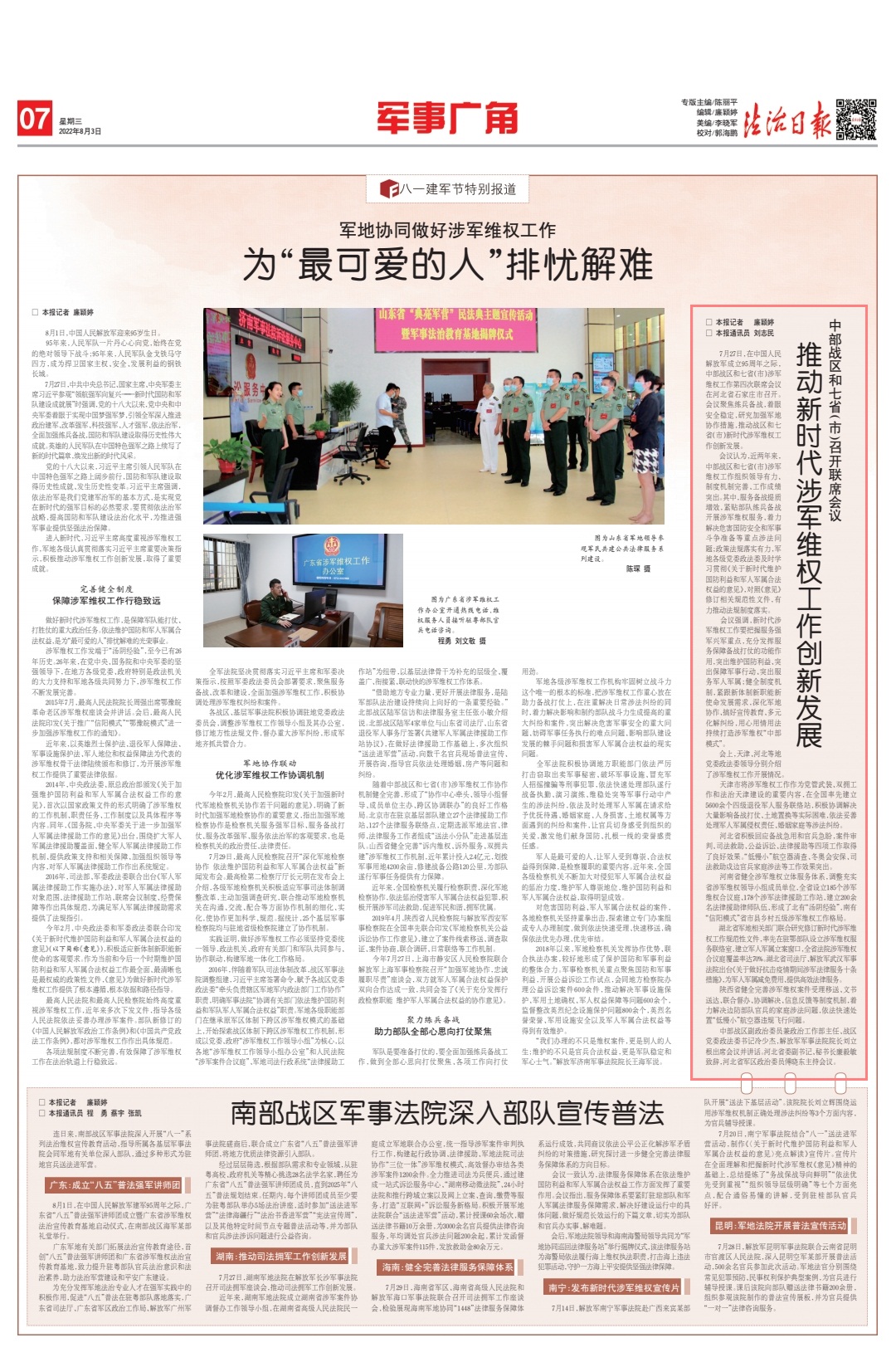 陜西省健全完善涉軍維權(quán)案件受理移送、文書送達、聯(lián)合督辦、協(xié)調(diào)解決、信息反饋等制度機制,著力解決邊防部隊官兵的家庭涉法問題,依法快速處置“低慢小”航空器違規(guī)飛行問題。