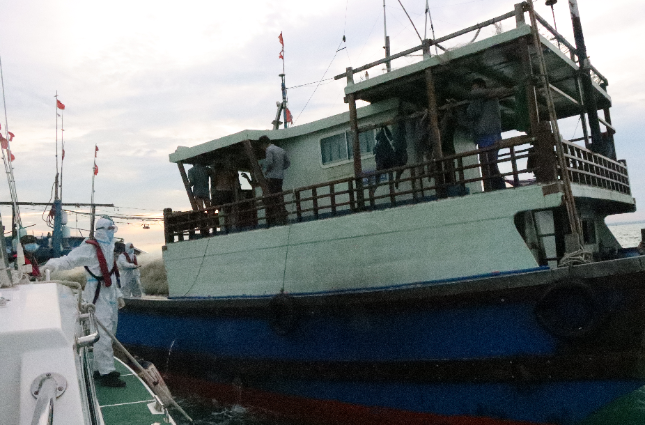 8月5日傍晚,??诤>纸尤罕娕e報(bào)稱,位于瓊州海峽航道附近海域出現(xiàn)多艘漁船,船上載有大量漁具,涉嫌禁漁期非法出海捕撈。該局立即指派美蘭工作站、文昌第二工作站、龍華工作站協(xié)同處置。趕到目標(biāo)海域后,海警執(zhí)法員發(fā)現(xiàn),現(xiàn)場有11艘臨高籍漁船均無法提供合法有效的船舶證書以及船舶駕駛資質(zhì),船上載有大量漁網(wǎng)及少量漁獲物,涉嫌禁漁期非法出海捕撈,遂將涉案船員和船舶帶回做進(jìn)一步調(diào)查。
