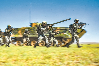 圖為第73集團(tuán)軍某旅“紅四連”高擎先輩用熱血浸染的旗幟,不斷沖鋒。圖為該連官兵在野外進(jìn)行步戰(zhàn)協(xié)同訓(xùn)練。劉志勇 攝