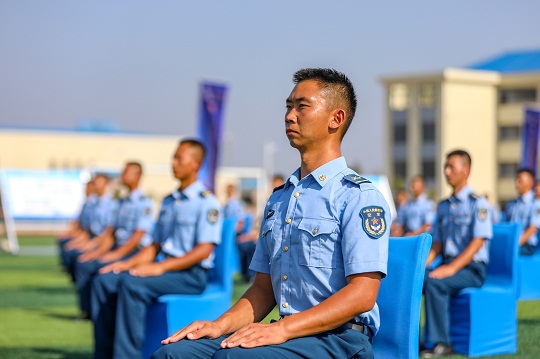 圖為軍營網(wǎng)絡安全宣傳周活動啟動儀式現(xiàn)場,官兵端坐靜聽。