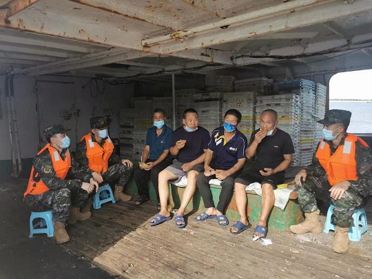 該局執(zhí)法員還利用碼頭走訪、登臨檢查等時(shí)機(jī),深入轄區(qū)為漁船民送去團(tuán)圓月餅和節(jié)日祝福?!按蟾?,最近航道船舶比較多,出海捕魚作業(yè)時(shí)可得注意安全,海上遇到困難記得撥打95110報(bào)警電話,我們定會守護(hù)您的安全?!眻?zhí)法員一邊送上月餅,一邊和漁民聊起家常。