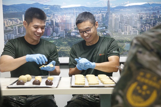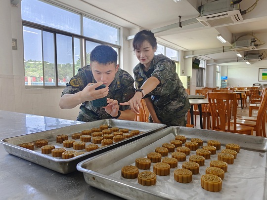 該局精心策劃相關(guān)事宜,提前定制特殊模具,指派專(zhuān)人指導(dǎo)月餅制作。為讓小小月餅吃出滿(mǎn)滿(mǎn)的“儀式感”,執(zhí)法員們將一抹抹鄉(xiāng)愁融進(jìn)了月餅里,把一句句祝福包在了月餅中?!爸袊?guó)海警”、“海疆衛(wèi)士”、“不忘初心”、“絕對(duì)忠誠(chéng)”……一個(gè)個(gè)獨(dú)具海警特色的月餅記錄了海警人的家國(guó)情懷。