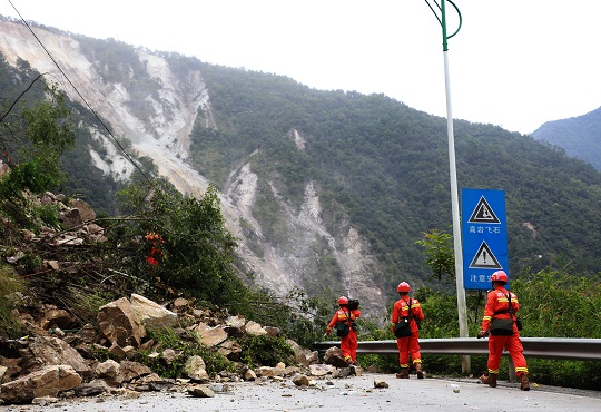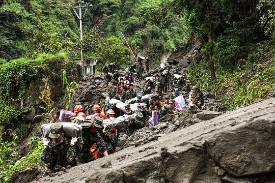 圖為武警四川總隊(duì)涼山支隊(duì)官兵徒步奔赴石棉縣草科藏族鄉(xiāng)開展搜救工作。