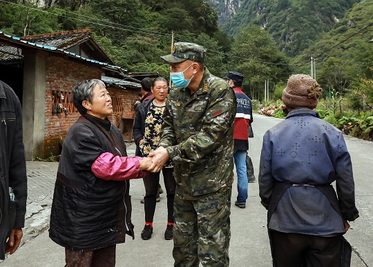 圖為駐地群眾感謝救援官兵。