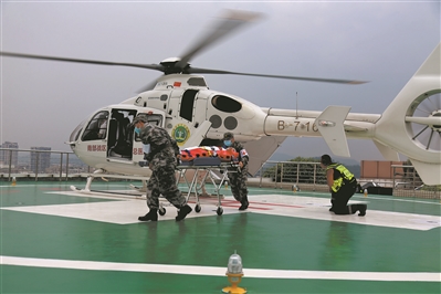 來之能戰(zhàn),靠的是底氣;戰(zhàn)之必勝,靠的是能力。黨的十八大以來,隨著我軍聯(lián)勤保障改革深化,各級衛(wèi)勤機構不斷強化戰(zhàn)斗隊意識,大興實戰(zhàn)化訓練之風。不久前,南部戰(zhàn)區(qū)總醫(yī)院參與基地化救治演練。圖為民用救護直升機運送重傷員抵達后方。趙建偉 攝