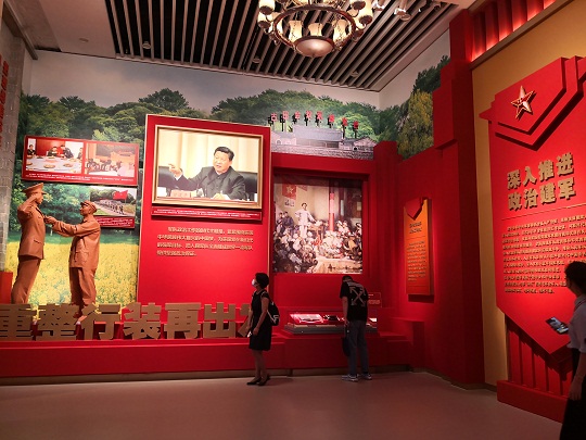 在“重整行裝再出發(fā)”專題展項,“古田會議永放光芒”八個大字,將人們的思緒帶到福建省上杭縣古田村。1929年,紅四軍黨的第九次代表大會在此召開,確立了“思想建黨、政治建軍”的原則,確立了黨對軍隊的絕對領(lǐng)導(dǎo)。2014年,全軍政治工作會議在這里召開,對新時代政治建軍作出部署,恢復(fù)和發(fā)揚我黨我軍光榮傳統(tǒng)和優(yōu)良作風(fēng),以整風(fēng)精神推進政治整訓(xùn),全面加強軍隊黨的領(lǐng)導(dǎo)和黨的建設(shè),深入推進軍隊黨風(fēng)廉政建設(shè)和反腐敗斗爭,推動人民軍隊政治生態(tài)根本好轉(zhuǎn)。自此開啟思想建黨、政治建軍新征程。