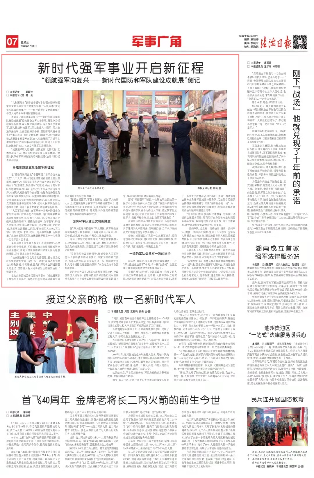 一流的軍隊,必然有一流的法治;建設(shè)一流的軍隊,需要一流的法治保障。黨的十八大以來,全軍深入開展法治宣傳教育,把法治教育納入部隊思想教育體系;以法治軍營創(chuàng)建活動為載體,在法治理念傳播、法治知識普及、法治理論引領(lǐng)等多方面著力,讓官兵在耳濡目染、潛移默化中形成法治自覺。