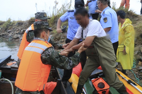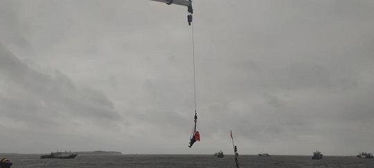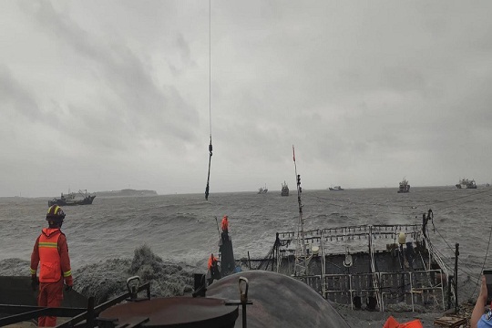 9月16日,山東威海海警局接到報警稱,一艘漁船在榮成市神飛造船廠附近海域發(fā)生船舶傾覆,兩名群眾被困,受臺風(fēng)“梅花”影響,事發(fā)海域風(fēng)力達7級以上,浪高3-5米,情況十分危急。海警執(zhí)法員第一時間趕赴現(xiàn)場,并對接相關(guān)部門聯(lián)合行動。海警執(zhí)法員不斷向被困群眾喊話安撫情緒,并采取吊車起吊的方式實施救援。經(jīng)過近一個小時的努力,兩名群眾安全脫困,目前身體狀況良好。