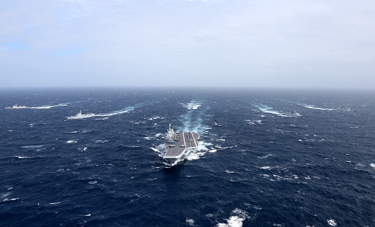 2021年4月,遼寧艦航母編隊在臺灣周邊海域進(jìn)行訓(xùn)練。