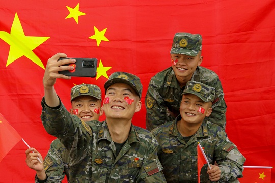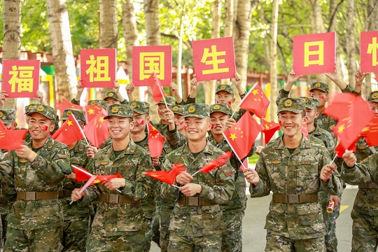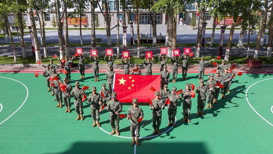 國(guó)慶前夕,武警青??傟?duì)開(kāi)展“向祖國(guó)深情告白”主題活動(dòng),官兵們通過(guò)與國(guó)旗合影、組織升旗儀式等形式,向偉大祖國(guó)深情告白,祝福偉大祖國(guó)繁榮昌盛。圖為官兵揮舞國(guó)旗喜迎國(guó)慶。