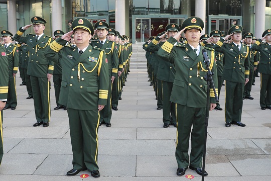 “同志們,黨在號(hào)召、祖國(guó)在呼喚、人民在期待,時(shí)代催人奮進(jìn),我們要堅(jiān)定愛(ài)黨的信念、強(qiáng)化愛(ài)國(guó)的情懷、盡好衛(wèi)國(guó)的責(zé)任、扛起強(qiáng)國(guó)的擔(dān)當(dāng),為黨的事業(yè)、為國(guó)家富強(qiáng)作出軍人應(yīng)有的貢獻(xiàn)!”升旗儀式后,總隊(duì)少將政治委員楊志強(qiáng)發(fā)表了熱情洋溢的致辭。
