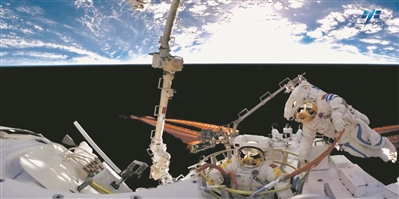2022年9月17日,神舟十四號(hào)乘組航天員陳冬、蔡旭哲從問天實(shí)驗(yàn)艙出艙,進(jìn)行艙外作業(yè)。圖片來自中國(guó)載人航天官方微博