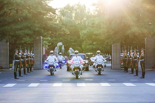 白馬銀袍、金縷烏靴,顯大國(guó)威儀;警燈閃爍、馬達(dá)轟鳴,礪鐵血精兵。一場(chǎng)場(chǎng)箭陣式飛馳、一次次雁陣式流動(dòng),國(guó)賓護(hù)衛(wèi)隊(duì)已然成為中國(guó)特色大國(guó)外交的閃亮名片。