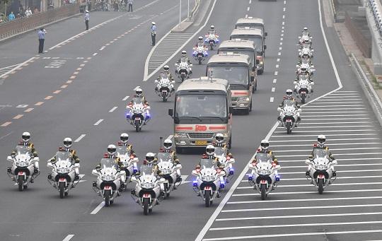 圖為2021年7月1日?qǐng)A滿完成“七一勛章”頒授儀式摩托車護(hù)衛(wèi)任務(wù)。李響 攝