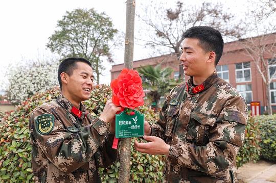 圖為新下隊官兵栽種泡桐樹,傳承紅色基因,擔(dān)當(dāng)強(qiáng)軍重任。