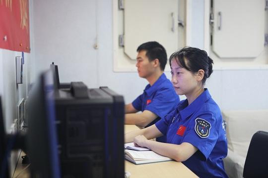 任務(wù)前12小時,“偏南風(fēng)4到5級,浪高1.5到2.0米……”氣象員包歆瑩認真記錄著觀測數(shù)據(jù)。她必須按任務(wù)要求準時提供確切氣象預(yù)報和溫、濕、壓實測數(shù)據(jù)。