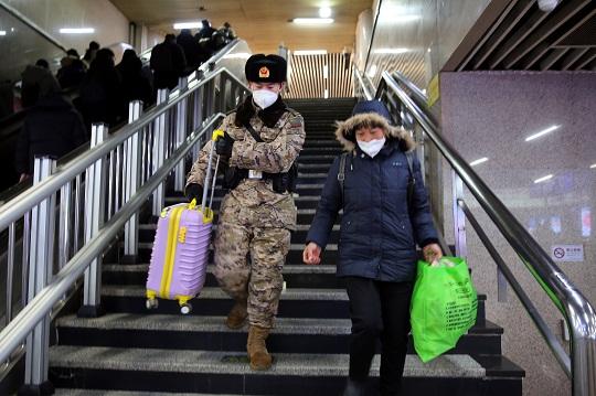 圖為北京西站北廣場(chǎng)旅客人頭攢動(dòng),武警官兵認(rèn)真執(zhí)勤。