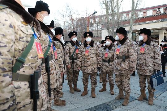 圖為武警青海總隊(duì)政委楊志強(qiáng)(右四)赴一線檢查勤務(wù)、慰問官兵。本報(bào)通訊員 朱曉坷 攝