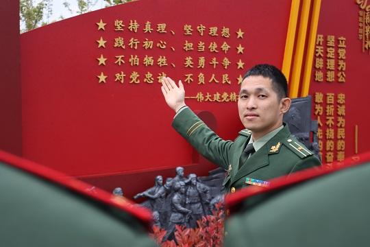 圖為武警浙江總隊(duì)嘉興支隊(duì)偵察股股長(zhǎng)周彥楠給下隊(duì)新兵開展隊(duì)史教育。李超 攝