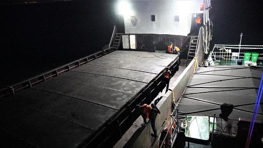 5月14日,上海崇明海警局執(zhí)法艇位上海吳淞口水域巡邏期間,發(fā)現(xiàn)一艘貨船由舟山航行至上海海域后關(guān)閉船舶自動識別系統(tǒng),且吃水較深,形跡可疑。執(zhí)法人員立刻鳴警喊話,要求其接受檢查,但該船無視警告拒不停船,企圖改變航向,加速逃竄。經(jīng)過近1個小時的追捕,兩艘執(zhí)法艇將其成功逼停后實施登臨檢查。經(jīng)查,該船裝載有牛肉、牛雜等凍品200余噸。