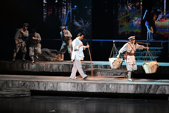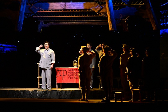 該劇是由江西省委組織部、江西省委宣傳部出品,江西文演集團(tuán)、江西省話劇團(tuán)創(chuàng)排的一部精品力作。舞臺(tái)上,八塊垂直冰屏、三層可調(diào)角度的升降臺(tái),生動(dòng)還原了典型歷史場(chǎng)景、革命斗爭(zhēng)氛圍和井岡山地區(qū)特色。演繹中,飽滿(mǎn)的故事情節(jié)、鮮活的人物形象、激烈的劇情沖突,實(shí)現(xiàn)了歷史邏輯、藝術(shù)邏輯和情感邏輯的有機(jī)結(jié)合,將政治性、思想性、藝術(shù)性、觀賞性融于一體,讓學(xué)員們沉浸式回顧那段崢嶸歲月。