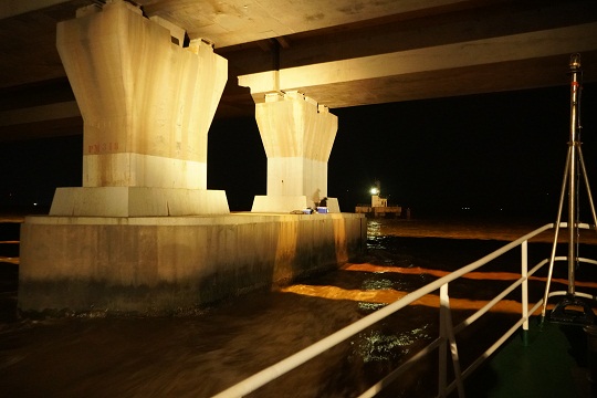 東海大橋是洋山深水港通往大陸的唯一通道,是洋山深水港的生命線,也是國家重要戰(zhàn)略設施。近年來,隨著休閑海釣活動興起,部分海釣愛好者雇傭各類船舶,擅自停靠東海大橋橋墩,嚴重影響通航孔航行秩序。部分垂釣人員為方便垂釣,在橋墩打孔安裝釣具支架,該行為破壞了橋墩表層,易使海水腐蝕橋墩內部結構,對過往船舶、往來車輛和大橋整體造成嚴重安全隱患。